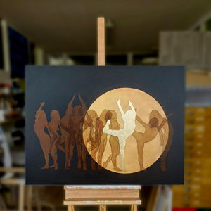 The series is a collection of artworks focusing on merging and interacting motions. Each work in this series is characterised by fluid motions that merge into a harmonious ensemble on the canvas. The choice of silhouettes as a form of expression invites the viewer to experience the power and beauty of movement in its purest form. The old master glazing technique is used to visually represent the movements and their fusion. The superimposition of transparent layers of paint creates new nuances and depths of colour that add an extraordinary dimension to the works. While the contours of the figures are clearly defined, their inner selves and movements open up a space for individual interpretations and allow us to experience and feel the universal language of movement.